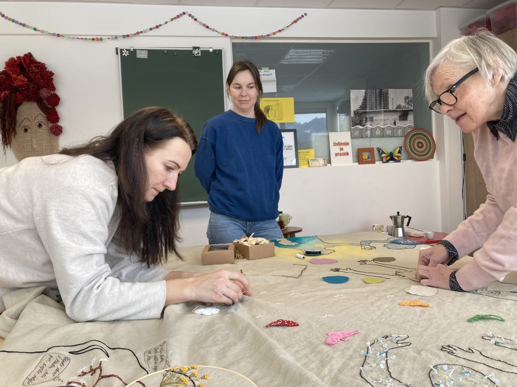 Izvedle so delavnico gladkega vezenja – izvezene bodike so navdušile skupino. V novem letu je še ena članica predstavila punch-needling – posebno tehniko tkanja z iglo, s katero so članice izdelale unikatne obeske za ključe.